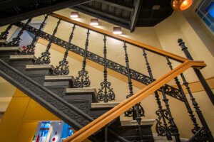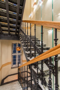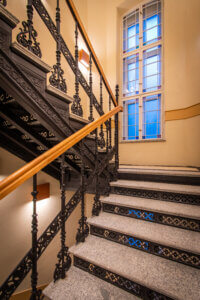 Stopnice z ozdobnym profilem – zgodnie ze stylem zabytkowej kamienicy.